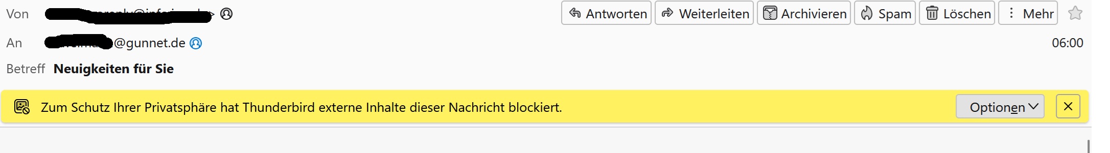 Dies steht oberhalb der Mail zu lesen. .... Zum Schutz ihrer Privatspähre ....