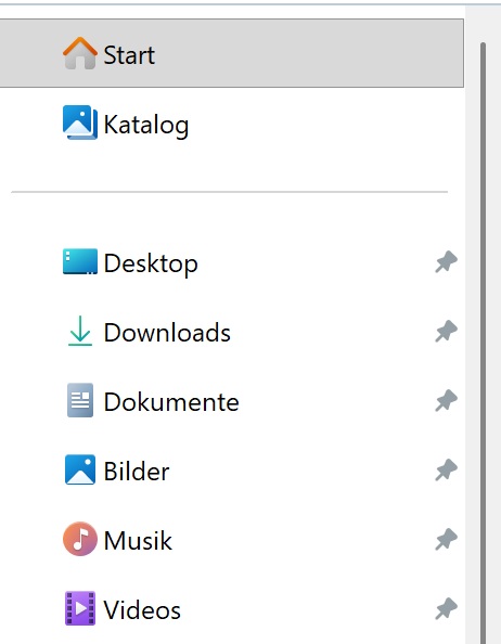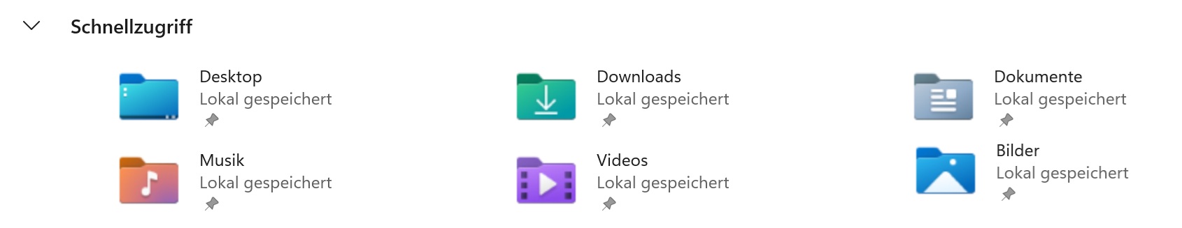 Es können auch noch weitere Ordner angepinnt sein. Die vorgenannten Ordner sind es aber standardmäßig.