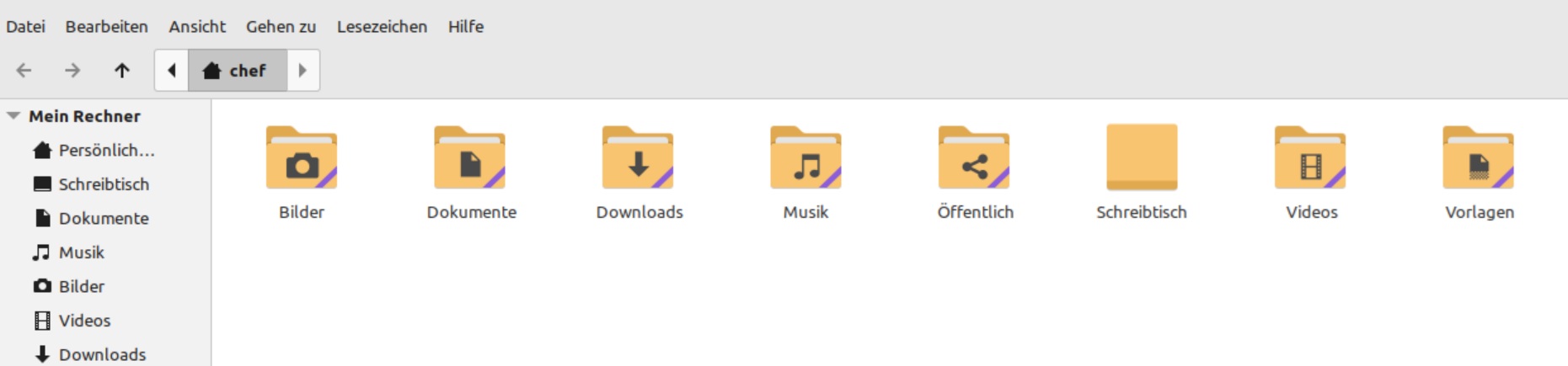 Bei Linux Mint existieren standardmäßig dieselben Ordner. Auch sie sind auf oberster Ebene des User-Ordners angelegt und mit einem Klick auf den Dateiexploerer sichtbar.