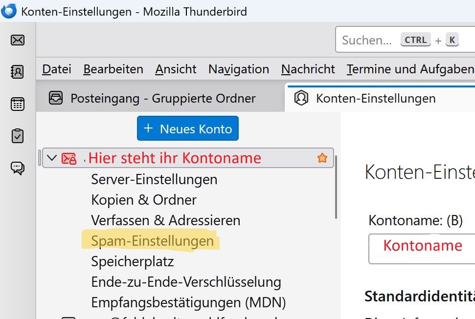 Spamfilter für ein bestimmtes Mailkonto einschalten